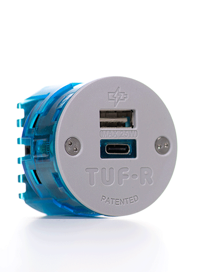 OE Electrics’ TUF-R® A+C PD (25W) is our next-generation USB fast charging module incorporating the latest Power Delivery technology and a world-first reversible USB A port.