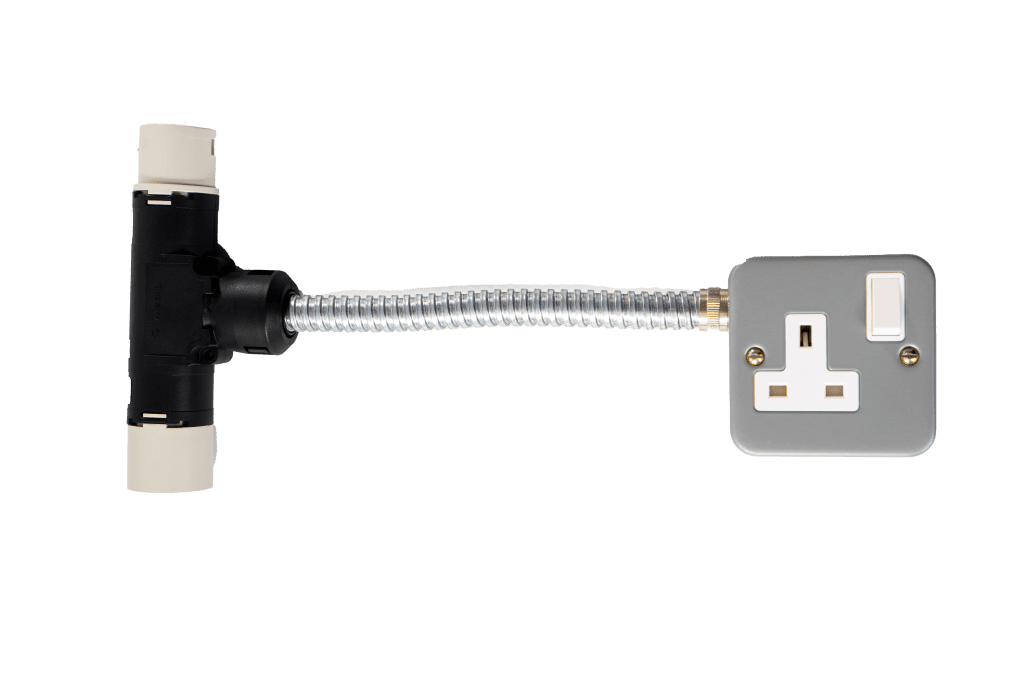 Qikfit IEC with a three-pronged connector at right angles to its input